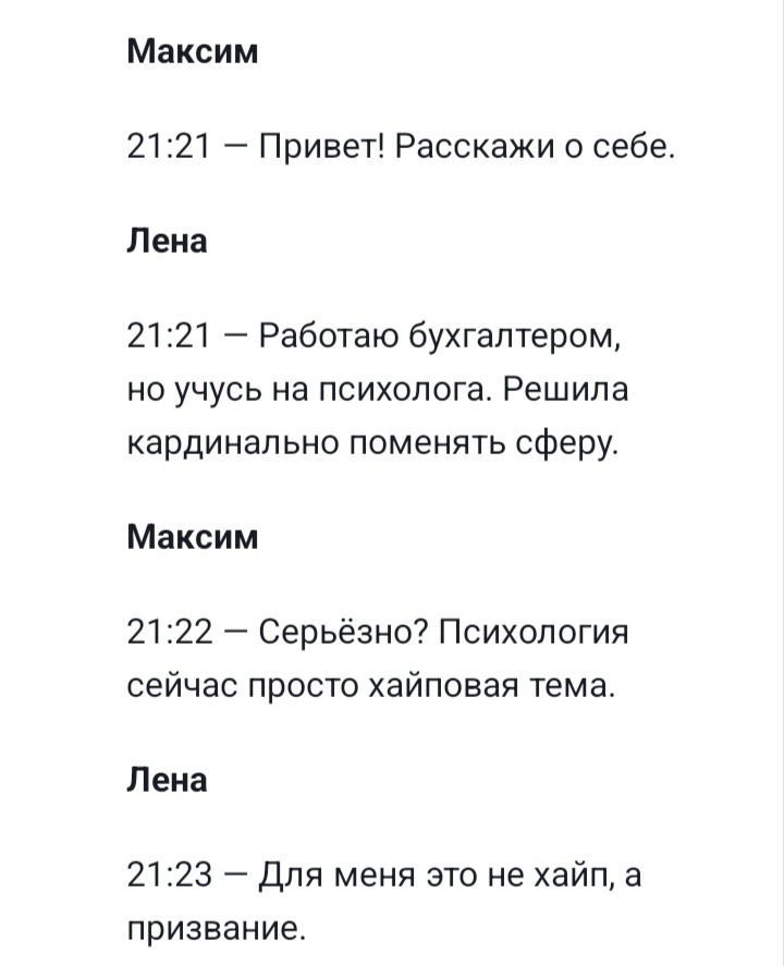 Диалог между Максимом и Леной
