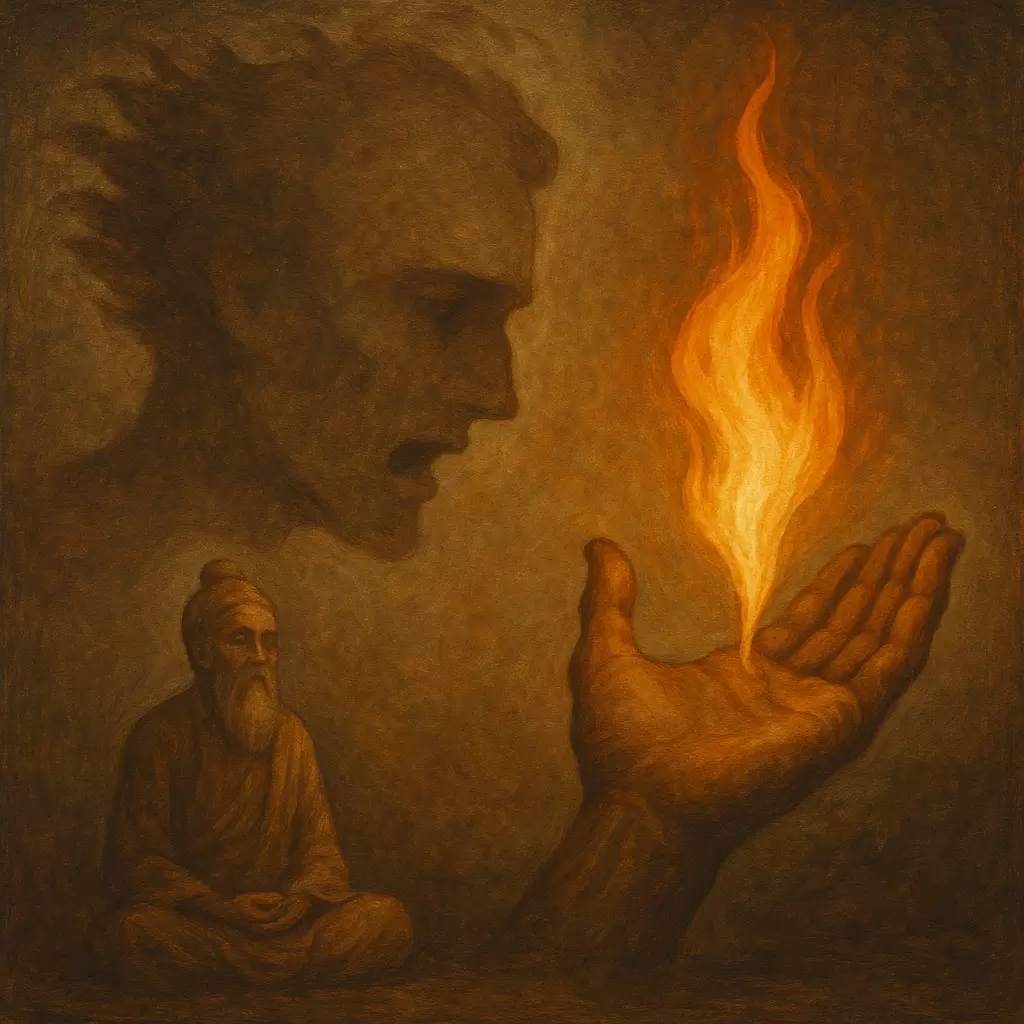 В одном из тихих уголков мира мудрец столкнулся с безумцем, в чьих глазах сверкали искры тревоги.