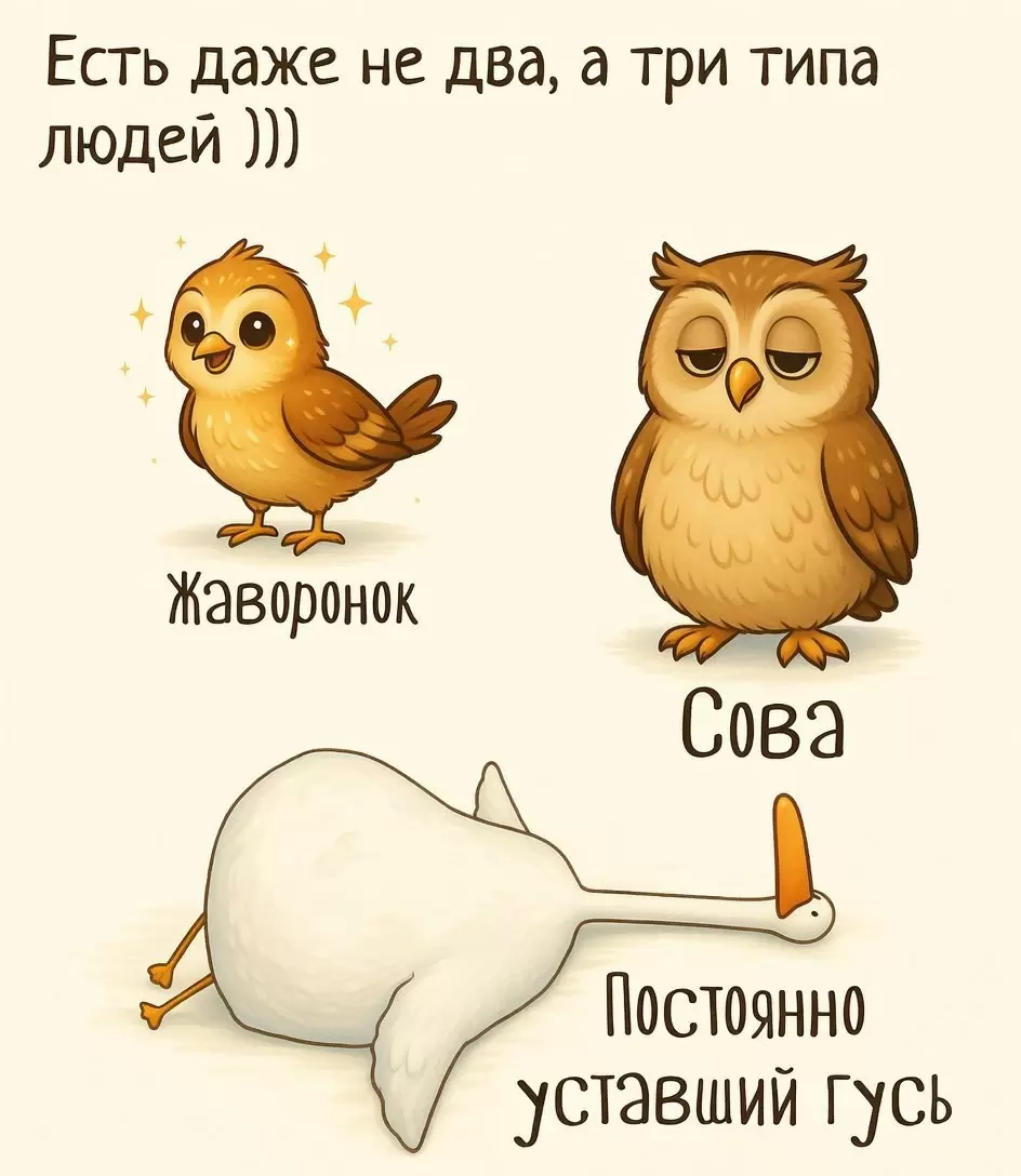 - Принятие себя: Важно позволить себе быть «гусем» и избавиться от постоянного чувства вины за недостаток энергии. Умение перенести некоторые встречи и дать себе возможность поспать — это не слабость, а забота о себе.